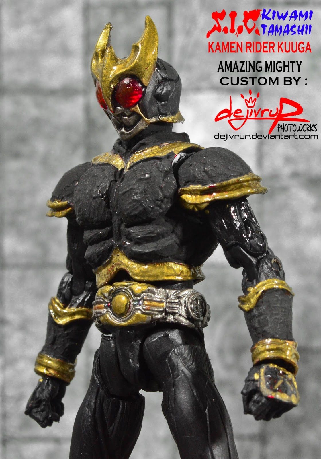 Kamen Rider Kuuga Amazing mighty form is and evolved form of the regular kuuga mighty form into something much more complex, a being that has embraced darkness, transformed into this dark, elegant warrior imbued with the power of darkness. more after the break...